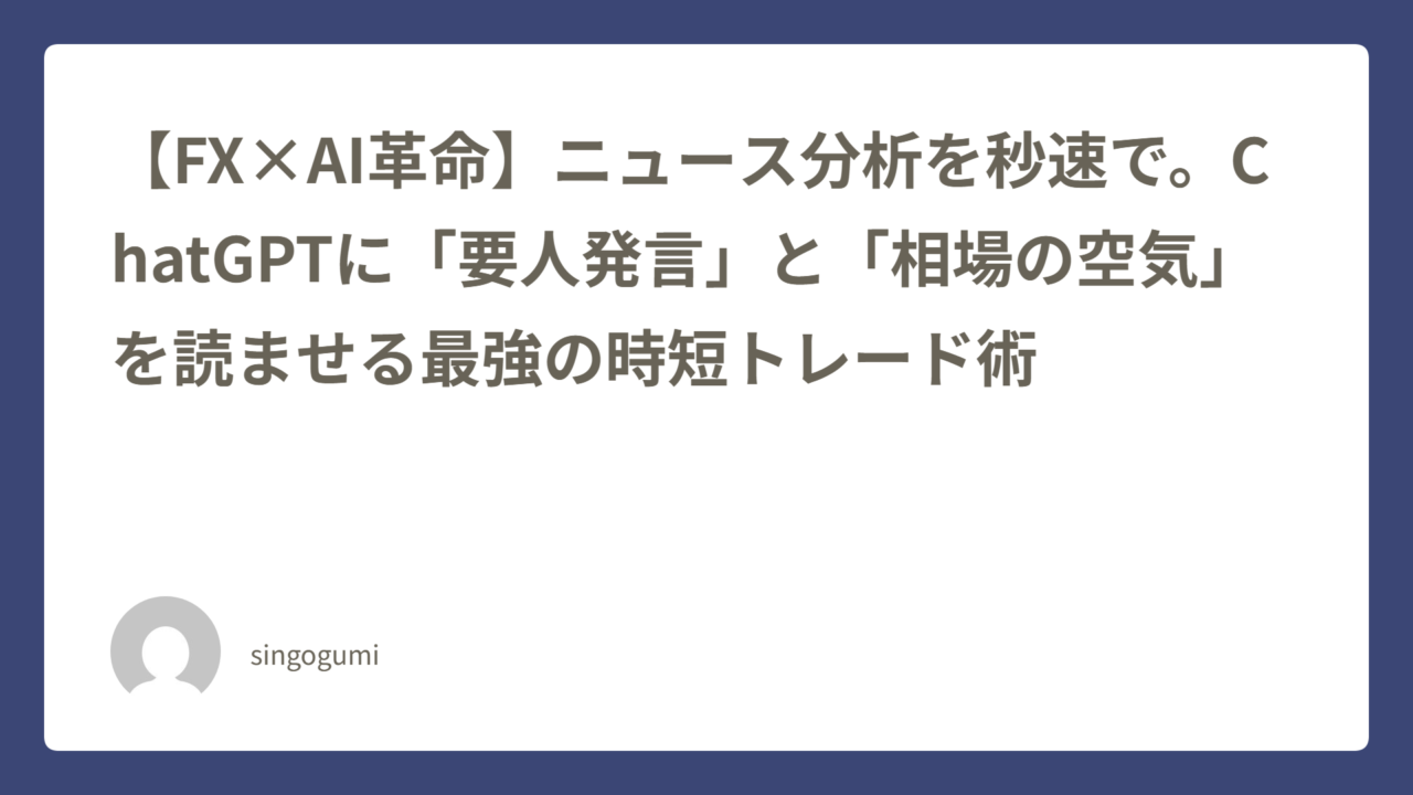 【FX×AI革命】ニュース分析を秒速で。ChatGPTに「要人発言」と「相場の空気」を読ませる最強の時短トレード術