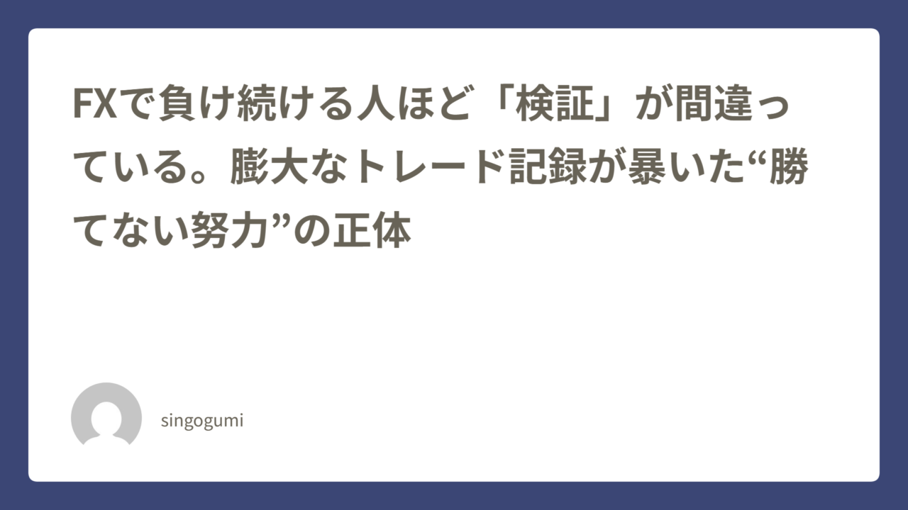 FXで負け続ける人ほど「検証」が間違っている。膨大なトレード記録が暴いた“勝てない努力”の正体